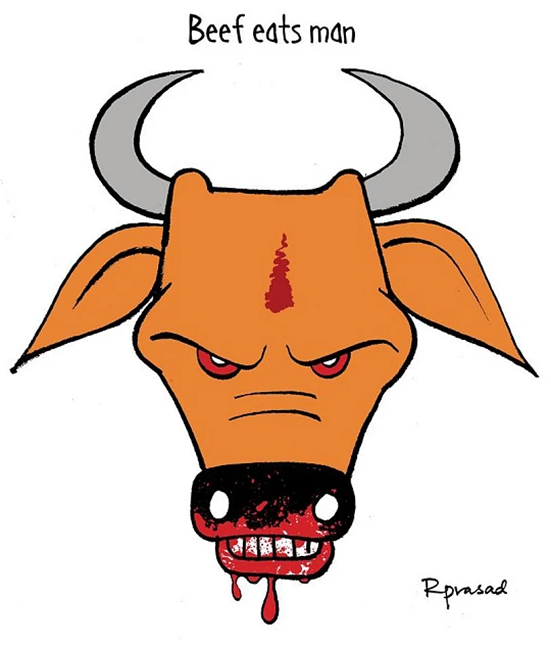 And here's what the Outlook web desk considers a great cartoon by R. Prasad. It was too hot for his newspaper, but it went viral online becoming the prime protest symbol against cow vigilantism.
