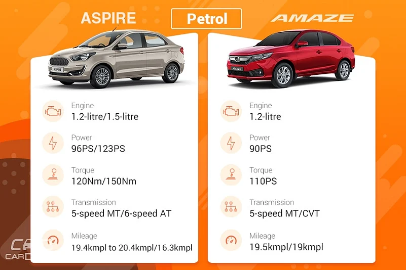 - While the Aspire is offered with two petrol engines, the Amaze is available with only one