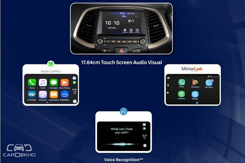 1. Top-spec Santro MT - This variant sports a dual-tone beige-black interior. It includes features like a 7-inch touchscreen infotainment system with rear parking camera, rear parking sensors, dual airbags, ABS with EBD, electrically-adjustable ORVMs, fog lamps, full-wheel covers and rear wiper and washer.