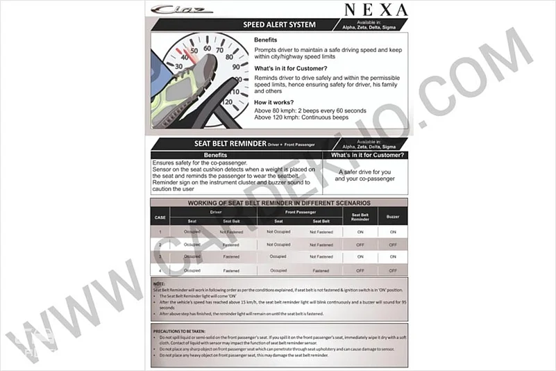 The SAS will warn the driver if the car exceeds 80kmph. Between 80kmph to 120kmph, the SAS will sound two beeps every minute as a warning signal. If the 2018 Ciaz is driven above 120kmph, there will be continuous beeps to warn the driver.