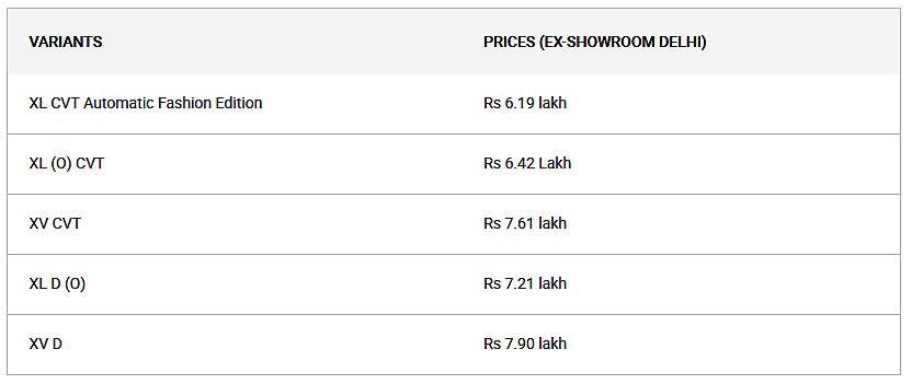 - Gets a new rear spoiler in the XV CVT variant and turn indicators on ORVMs in XV variant