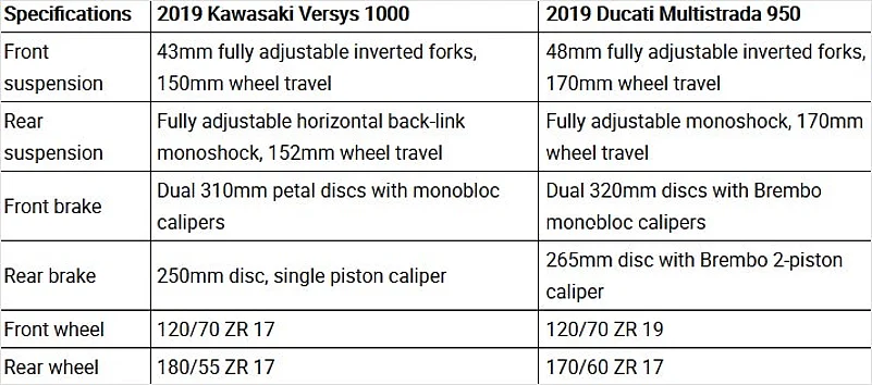 Adventure tourers are all the rage these days. Their inherent versatility and the capability of traversing ridiculously long distances in utter comfort make them much sought after by those who seek, erm... adventure. Cutting-edge MotoGP tech seems to be trickling down even to ADVs and they enhances a motorcycle’s dynamics considerably. Kawasaki and Ducati both have updated their adventure tourers at this year’s EICMA so let’s see how they stack up against each other on paper: