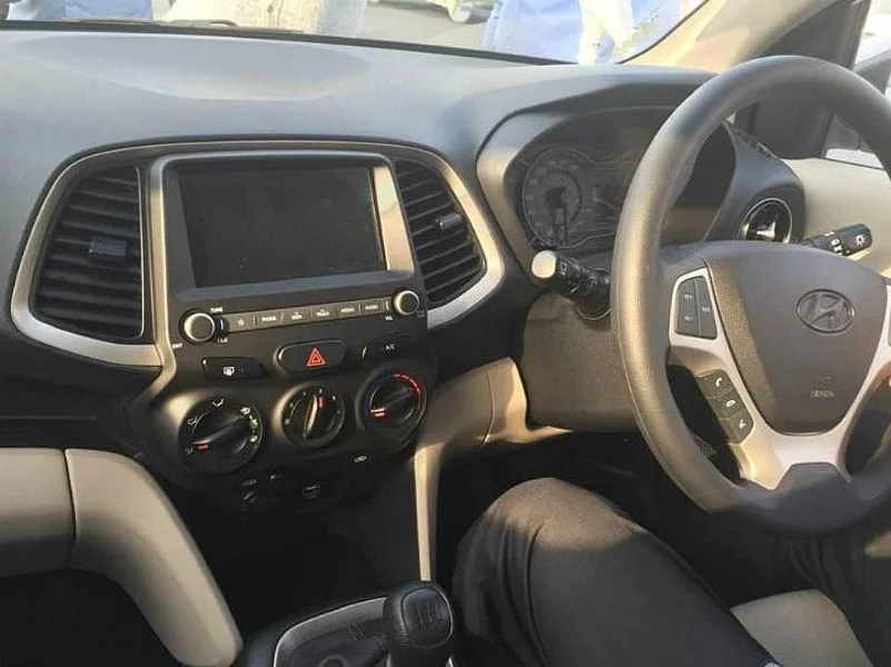 A shot of the interior shows that the Santro will feel like any other Hyundai, which should translate to good quality, feel-good materials all around. The highlights here include the 7-inch multimedia screen, a Hyundai-typical steering wheel with multi-function buttons for multimedia and telephony, manual A/C controls and a three-pod instrument cluster.