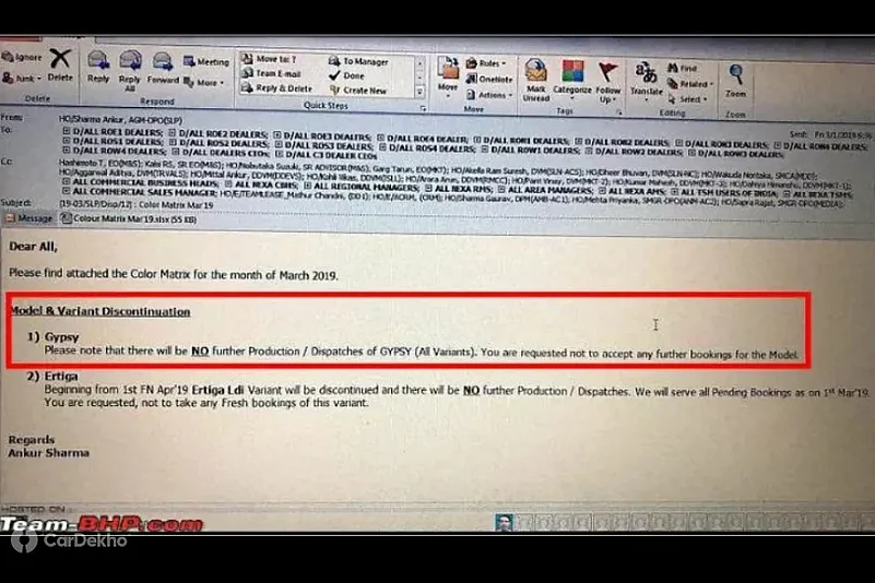 A leaked image that claims to be an email sent by the carmaker to its dealerships reveals that the 2018 Ertiga LDi will be discontinued on 1 April 2019. The email has also directed Maruti dealers to stop accepting bookings for base-spec Ertiga diesel starting 1 March 2019.