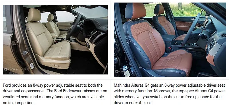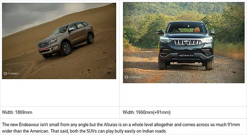 Ford’s flagship SUV in India, the Endeavour, has received some minor updates to take on newer rivals, one of them the Mahindra Alturas G4. So, which of these cars come across as a better offering? We let the pictures answer it for you.