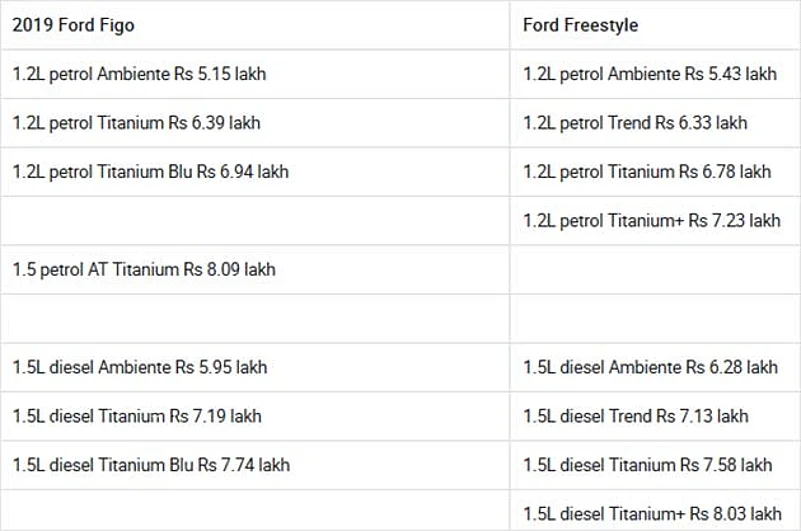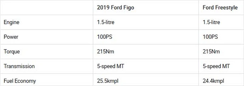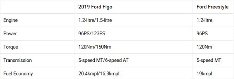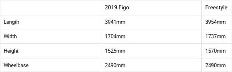 The Freestyle is longer, wider and taller than the Figo. However, the two cars have an identical wheelbase.