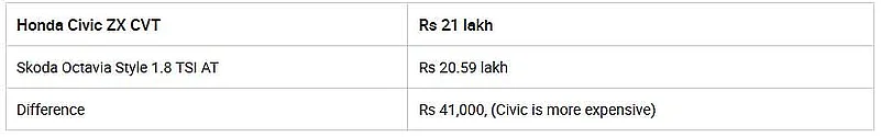 Honda Civic ZX CVT vs Skoda Octavia Style 1.8 TSI AT