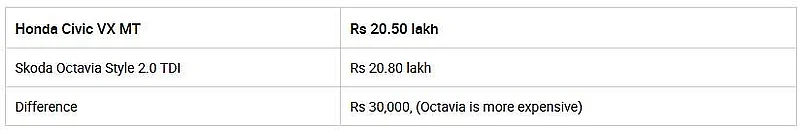 Honda Civic VX MT vs Skoda Octavia Style 2.0 TDI MT