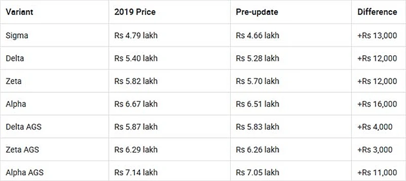 Slight increase in price for the 2019 Ignis; priced from Rs 4.79 lakh to Rs 7.14 lakh