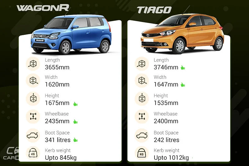 - The Tiago is not only more powerful than the Wagon R, it has a higher claimed fuel efficiency too