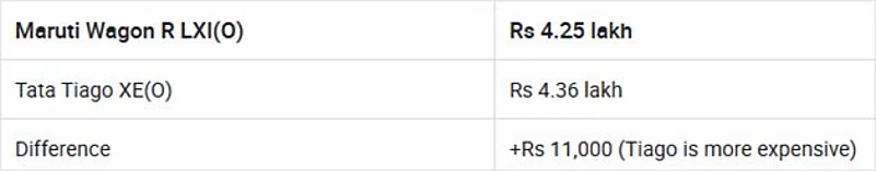 Maruti Wagon R LXI(O) vs Tata Tiago XE(O)