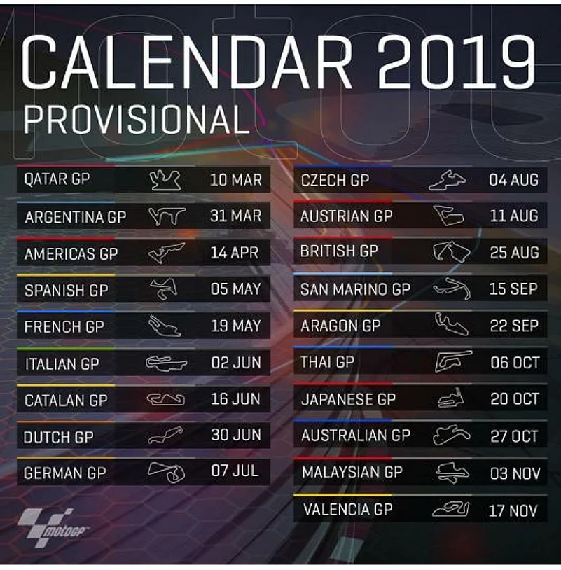19 rounds will be contested over the course of the season with the final round in Valencia, Spain slated for November 17. Spanish circuit, Jerez has always been the first European round of the championship and it is no different this year as the racing series will move to the continent in the first week of May. The summer break will take place between the rounds in Germany and Czech Republic while the usual triple header of Japan, Australia and Malaysia has been retained.