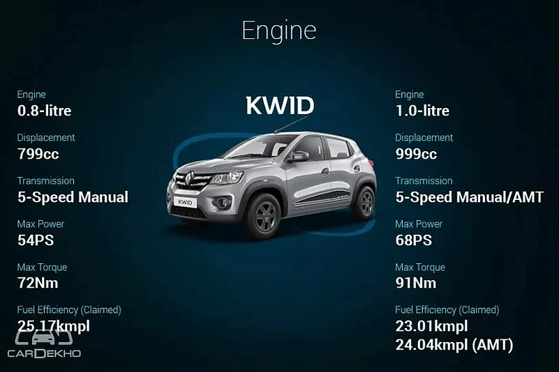 The Kwid STD version is available only with the smaller capacity 0.8-litre engine and a manual transmission. Here are its key features:
