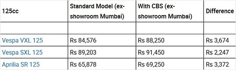 Piaggio group has also updated its 125cc scooters with CBS (Combined Braking System). These include the Vespa VXL & SXL 125, along with the Aprilia SR 125. The move doesn't come as a surprise considering the deadline of equipping models upto 125cc with CBS and models above 125cc with ABS (1 April 2018) is edging closer.