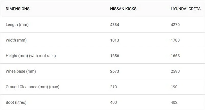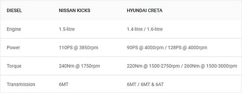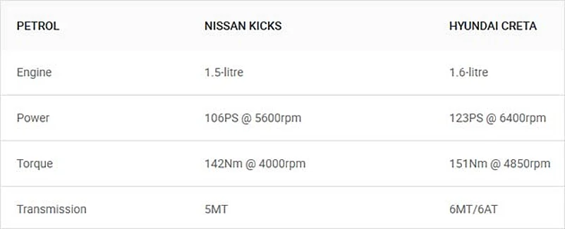 While it will be available with both petrol and diesel engine options, the Kicks will only be offered with a manual gearbox. So those looking for a compact SUV with the convenience of an automatic gearbox still have no choice but to buy the Creta.