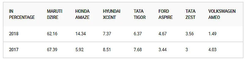 While it’s still a monumental task to stand up to the Maruti Dzire, the Honda Amaze managed to more than double its market share this year. The Ford Aspire and the Zest saw a marginal hike of 1.33 and .56 per cent over the previous year. In a nutshell, the Dzire might have lost some market share but remains the undisputed king of the crowded segment.
