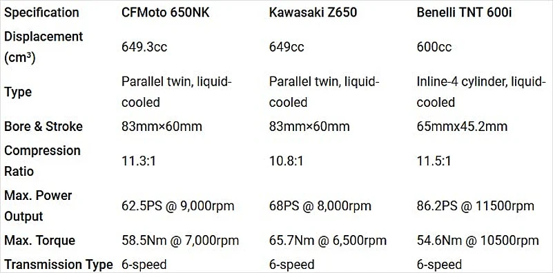 CFMoto has launched its 650NK middleweight naked at a fantastic price of Rs 3.99 lakh (ex-showroom). At this price, it is the third most affordable 650cc parallel-twin bike you can buy (the most affordable being the Royal Enfield Interceptor 650 and Continental GT 650). However given its specifications, the CFMoto 650NK competes with the Kawasaki Z650 and Benelli TNT 600i. Here is an on-paper comparison of the three.