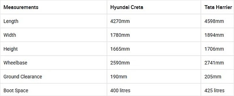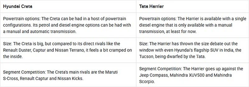 Disclaimer: We are only picking diesel variants of the Creta as the Harrier is not yet offered with a petrol engine. We will also not be considering the automatic variants of the Creta for this comparison as the Harrier is not offered with an automatic transmission yet. We will be comparing variants that are priced between Rs 50,000 of each other here. By looking at the table above, you can make out that there are two variants of the Creta and Harrier that overlap each other within the set parameters.