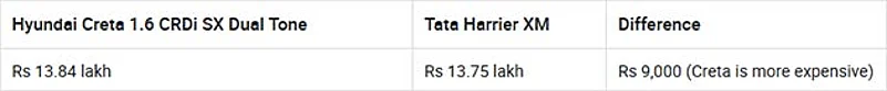 Hyundai Creta 1.6 CRDi SX Dual Tone Vs Tata Harrier XM