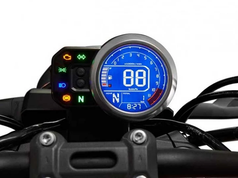 Next up is a full LCD digital instrument console with reads out information like fuel level, gear position, time, odometer, tripmeters alongside other tell-tale lights.