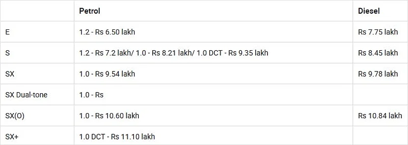 The full price list (ex-showroom, India) of the Venue is as follows:
