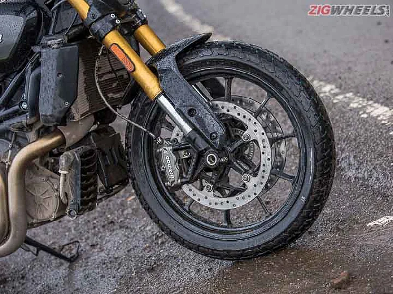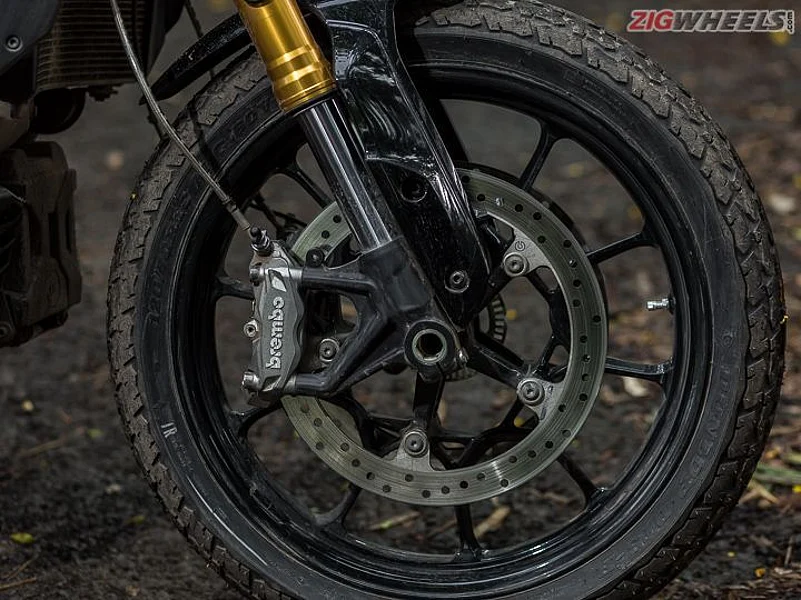 The rear has a narrower 150-profile tyre which helps make the bike more flickable but gets overwhelmed with the motor's performance. Given the motor it comes paired with, we would have loved conventional, stickier and wider rubber at the rear.