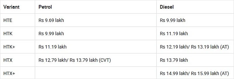 Seltos HT Line variants prices range from Rs 9.69 lakh to Rs 15.99 lakh (ex-showroom, India).