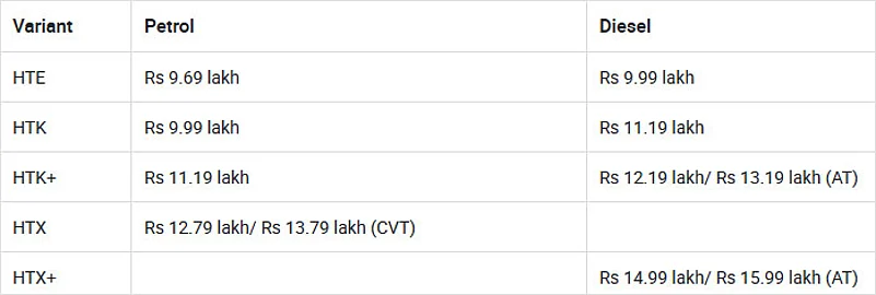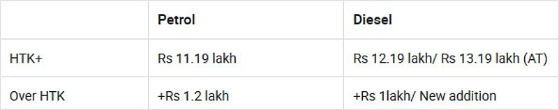 Now let’s look at the full price list of the Seltos (ex-showroom India): Tech-Line