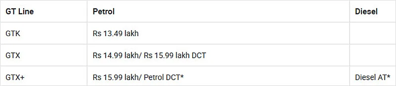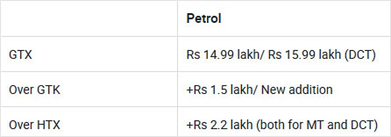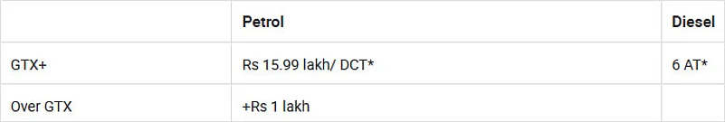* Prices of the GTX+ petrol DCT and diesel automatic will be announced soon. Features (over GTX)