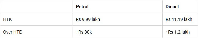 Prices range from 9.69 lakh to Rs 15.99 lakh (ex-showroom India).