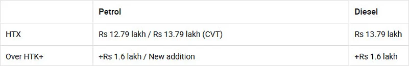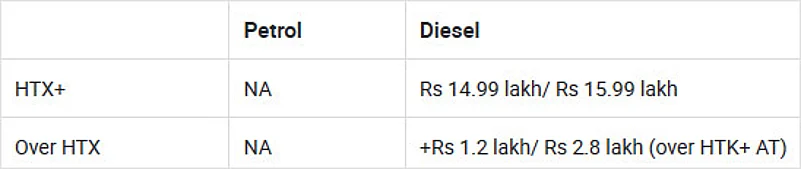 The add-ons that one gets on the HTK+ don’t justify the premium over the HTK variant. Most of these features are either cosmetic or feel-good in nature. Also, most of these features don’t hold much relevance in day-to-day usage either. However, the HTK+ is the most affordable variant with a diesel-auto powertrain option.