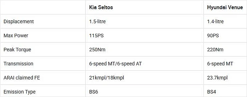 The Kia Seltos trumps the Hyundai Venue in all dimensions.