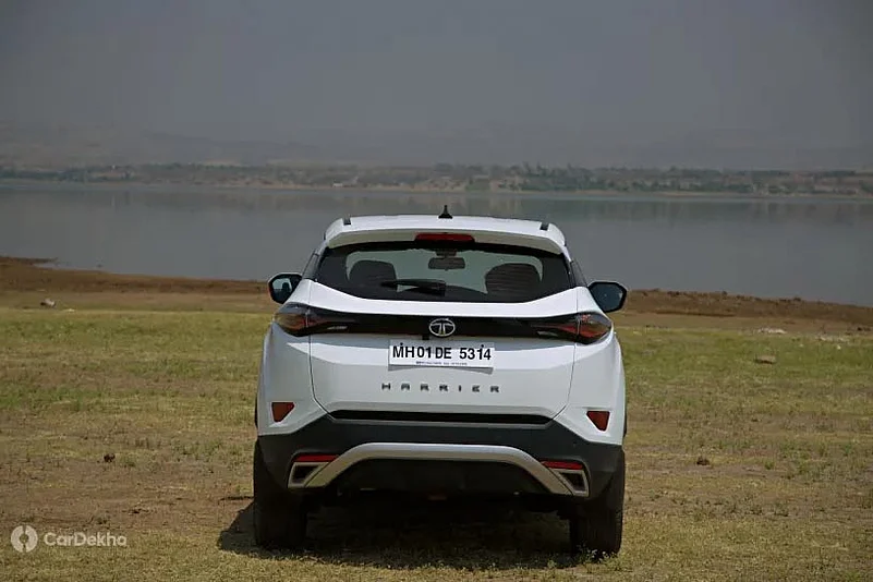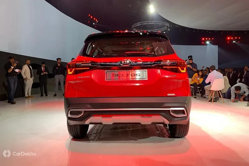 Both the Kia Seltos and Tata Harrier seem to have been designed by the same set of designers, it seems, when you look at their rear ends. Both have a roof-mounted spoiler along with a sleek wraparound LED tail lamp section. Tata badging surfaces on the center of the boot lid while a Seltos nameplate graces the left part of the boot with variant badging on the right. Both the SUVs feature faux exhaust outlets on the bumper with skid plates, black on the Harrier and silver on the Seltos.