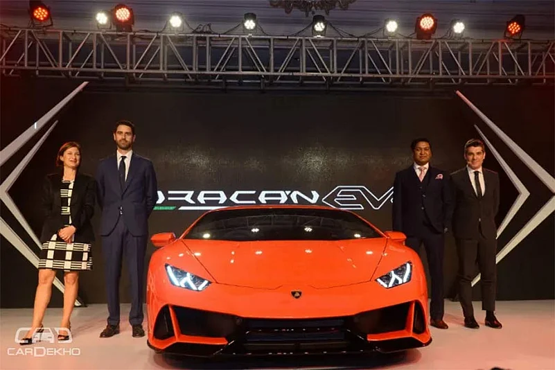 Delhi, India, 7th February 2019 - Automobili Lamborghini launches the new Lamborghini Huracan EVO. The next generation V10 super sports car, based on the prowess and performance of the Huracén Performante and incorporating next-generation vehicle dynamic control and aerodynamics.