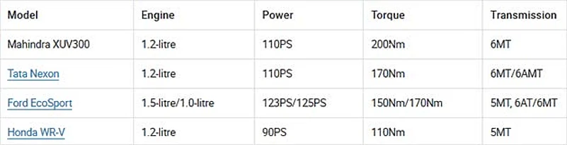 First, let’s take a look at the engine specifications of these sub-4m SUVs: