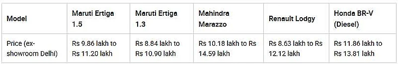 The Ertiga’s new diesel engine is more powerful and torquier than the smaller 1.3-litre unit that it will eventually replace. However, it is still not the most powerful or torquey engine in the company of its rivals. The Marazzo takes the credit for that. However, it is the second most fuel efficient engine here after the smaller 1.3-litre unit that comes equipped with Suzuki’s Smart Hybrid system. It must be noted that all the vehicles on the list are only available with a manual transmission.