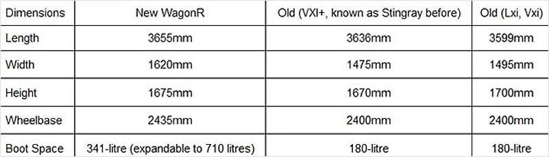 The new WagonR is longer than the old car by 56mm and by 19mm than the Stingray, which was later sold as WagonR VXi+. Bigger and bolder is how Maruti describes the new WagonR and it is indeed noticeably wider and longer than the old car. As CV Raman, Maruti’s senior executive director of engineering, explained, the third generation WagonR is 150mm wider and also has a 140mm wider track, which has resulted in an 120mm increase in shoulder room inside the cabin. The tallboy from Maruti isn’t as tall anymore though, as it is 25mm shorter than the outgoing model. However, the wheelbase has been stretched by 35mm.