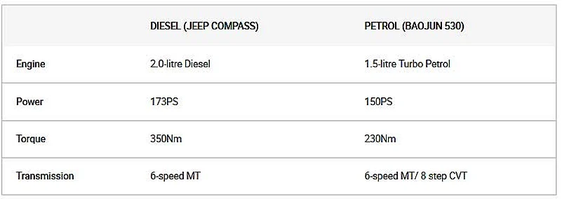 The MG Hector will be powered by the same Fiat 2.0-litre Multijet diesel engine as the Jeep Compass. There will also be a petrol engine on offer, but MG Motor is yet to reveal any details about it. We believe that it could be a 1.5-litre turbocharged petrol, as seen on the China-spec Baojun 530. While the is there no confirmation regarding the automatic diesel variant, the petrol-powered Hector is expected to get an automatic version in India. Here are the specs of the expected engine options: