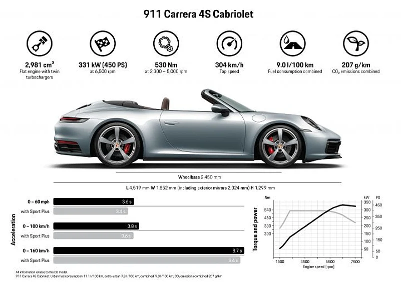 - The new 911 Cabriolet Carrera S and 4S use the same 3.0-litre, twin-turbocharged, boxer six-cylinder petrol engine.