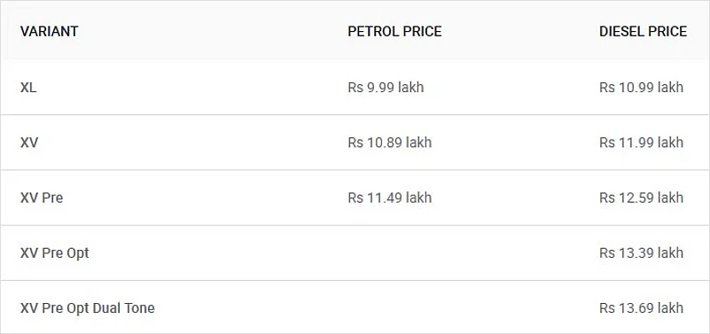 *Disclaimer: These are expected ex-showroom Delhi prices. Final prices could vary. We’re assuming Nissan won’t launch the Kicks in XV Pre Opt variant with the petrol engine.
