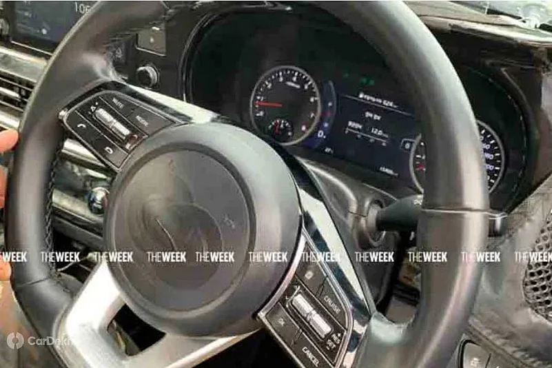 First up, the spy images confirm that the Kia Seltos will get an all-black interior theme. The Seltos will feature a digital-analogue 7-inch MID, the same size as the one on the Tata Harrier. It is positioned between the tachometer and speedometer and relays information regarding the drive position indicator (for automatic), engine and outside temperature, real-time fuel economy and range.