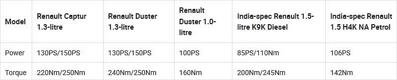 Currently, the Duster, Captur and Lodgy get the 1.5-litre diesel in two states of tune.