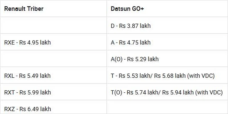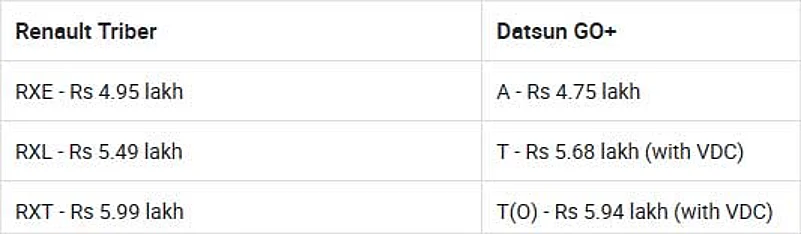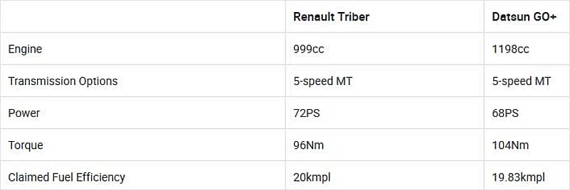 The 1.2-litre engine in GO+ is bigger but offers less power than the Renault’s 1.0-litre unit. However, the Datsun offers more torque than the Triber.
