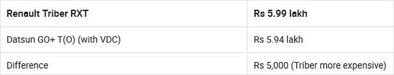 What GO+ T(O) offers over Triber RXT: LED DRLs, alloy wheels, rear wiper and washer and electronic stability control (ESC).