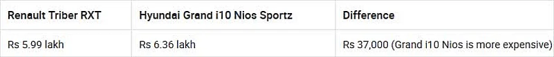 Renault Triber RXT vs Hyundai Grand i10 Nios Sportz