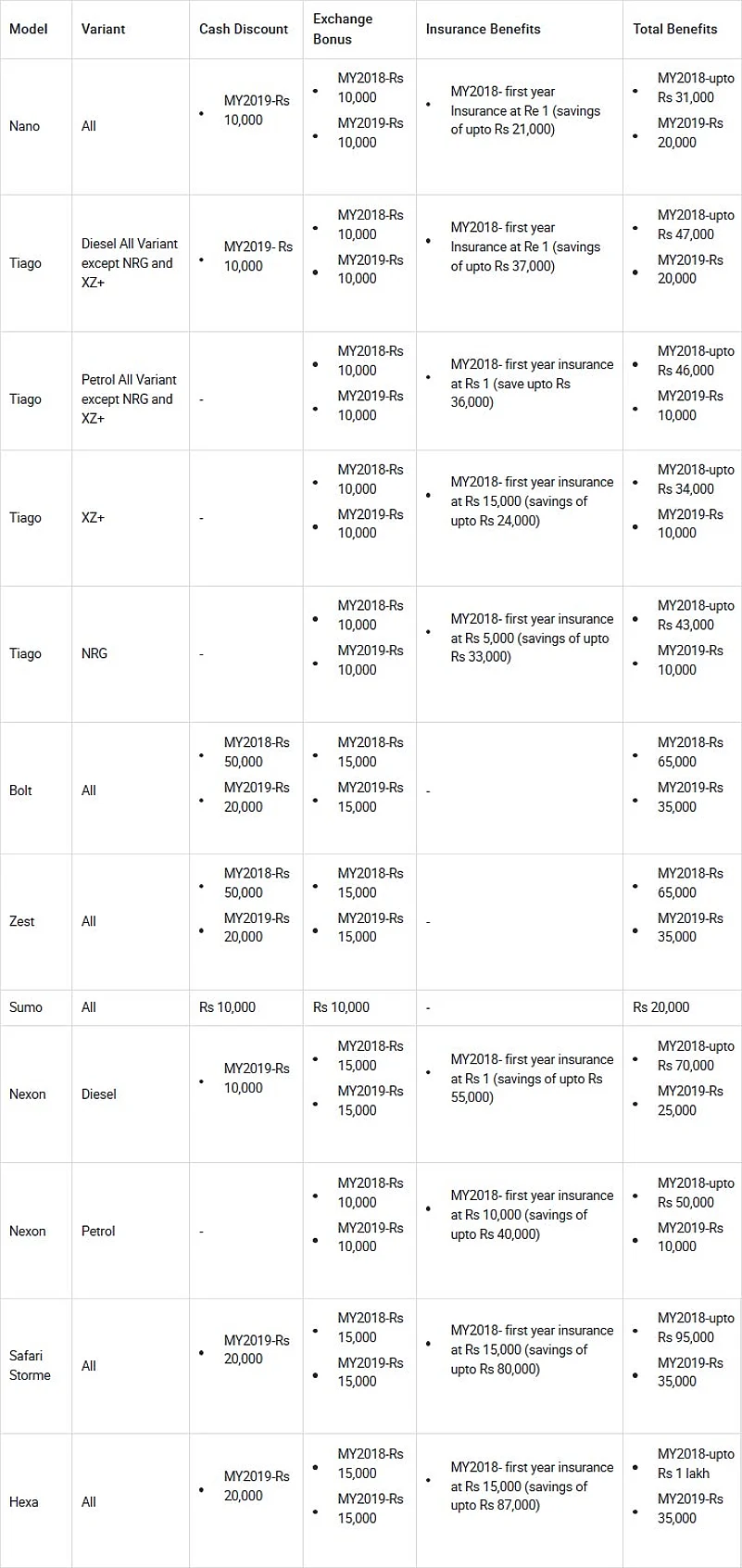 - Tata Hexa and Safari Storme are available with benefits of upto Rs 1 lakh.