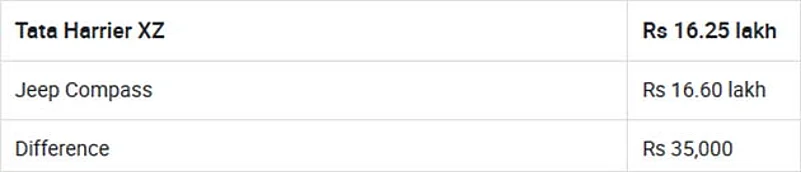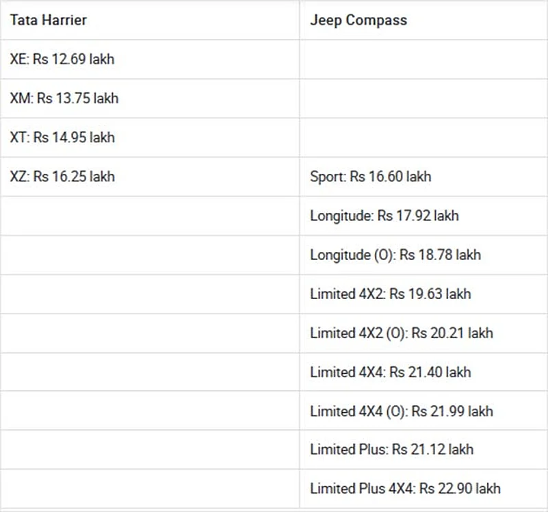 Disclaimer: For a fair comparison, we are pitting the top-spec Tata Harrier XZ against the Jeep Compass Sport which is Rs 35,000 more expensive than the former.