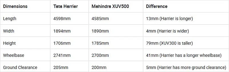 Tata’s Harrier is bigger than the XUV500 in all exterior dimensions other than height.