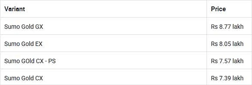 The last known iteration of the Sumo was called the Sumo Gold. The last time we received prices of it from authorised dealers was in April 2019. Take a look at them in the table below.