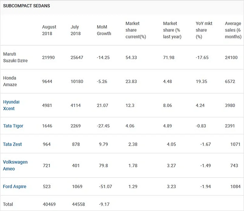 3. The rest: The Volkswagen Ameo continues to show dismal performance in the segment. In its usual fashion, Volkswagen could introduce a special edition of the Ameo for the festive season that might boost its sales.